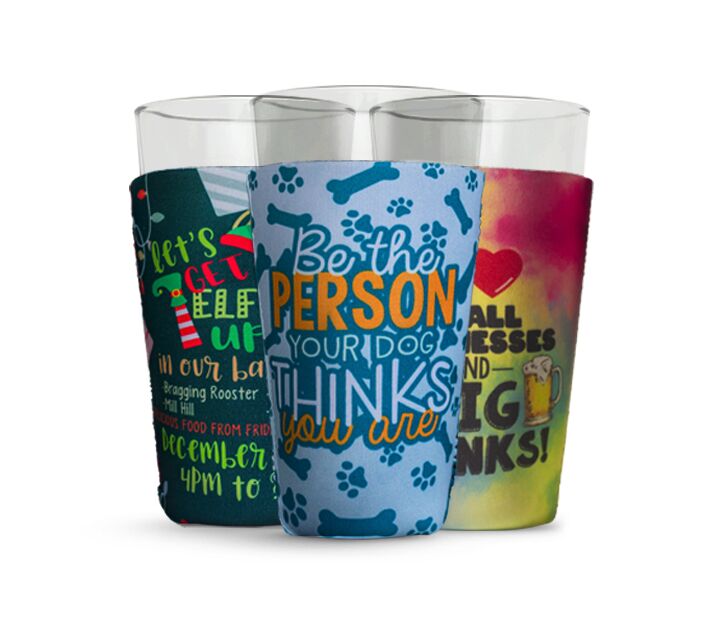 Whether you are looking for the original KOOZIE(R) to customize or one of our high end unique personal coolies, the neoprene pint glass cooler is a great go-to. Most clients who choose this product are high end bars, lounges, weddings and events where the beers flows cold and smooth and budgets are not tight. Any time we print neoprene pint glass coolies, we know the event will have amazing craft brews that taste best when they are cool and refreshing. If you are serving products that fit in solo cups, pint glasses, stadium cups, or standard angled glassware, this neoprene pint coolie will probably the perfect fit for your event.