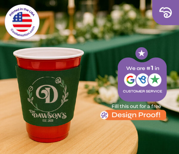 The whole printing process is pretty simple. It starts by filling out the free proof form and getting your ideas down. Once that is done one of our top designers will get back to you with some options. But don’t feel any pressure to approve the design before you’re ready. There is no extra charge for requesting more proofs. We want you to like your coolie and the design is a huge part.