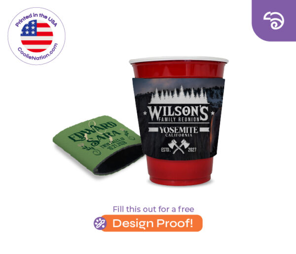 The Solo Cup sleeve coolie is different from our other Solo Cup design in that it has no bottom. They both slip on easily over the cup but this coolie uses the conical shape of the cup to stay in place. The pros of this design is that it’s less material and therefore better for the environment and is also easier to store. Another great thing about the sleeve is that it’s more adaptable. As long as the shape is similar to a solo cup then this coolie will fit. The biggest con is that you’ll have to hold your cup around the center only, but that is where you’d hold your cup of beer anyway right?
