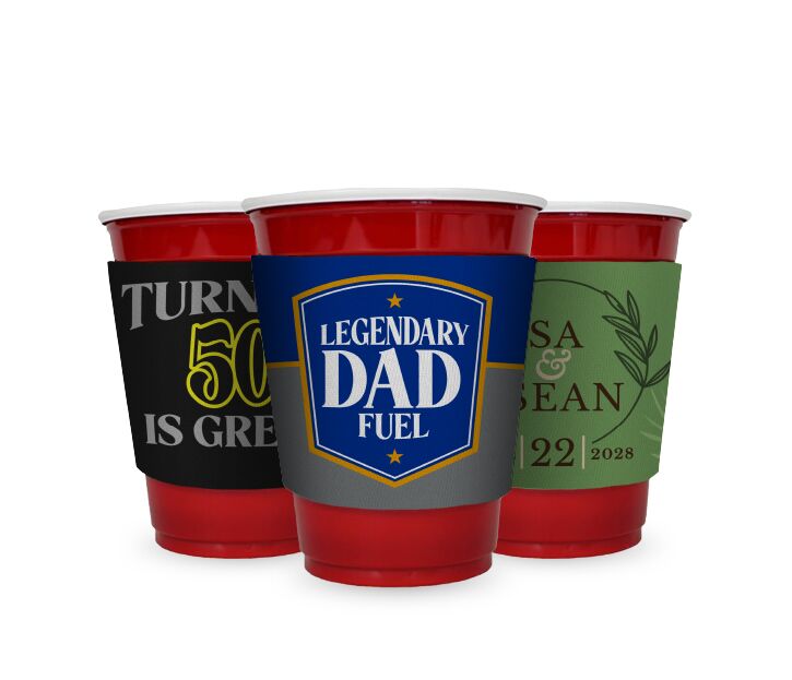 The Solo Cup sleeve coolie is different from our other Solo Cup design in that it has no bottom. They both slip on easily over the cup but this coolie uses the conical shape of the cup to stay in place. The pros of this design is that it’s less material and therefore better for the environment and is also easier to store. Another great thing about the sleeve is that it’s more adaptable. As long as the shape is similar to a solo cup then this coolie will fit. The biggest con is that you’ll have to hold your cup around the center only, but that is where you’d hold your cup of beer anyway right?